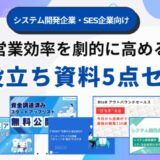 システム開発・SES業界での新規開拓に必要な要素を網羅し、短期間での商談獲得と受注率向上を実現できる内容を無料で公開いたします。