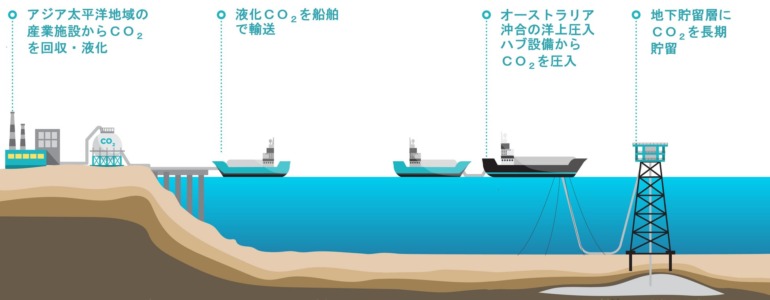 気候変動対策の一つである CCS は、世界的に大きな注目を集めています。国際エネルギー機関(IEA)は、脱炭素目標を実現するためには世界で約51億トン/年、日本で約1.7億トン/年のCO₂を貯留する必要があると試算しています。ところが、現在日本には稼働中のCCS施設はなく、世界全体でもわずか0.49億トン/年に過ぎません。そのため、各国で今後の計画・投資が急務となっています。日本政府も2024年2月に「CCS事業法」を閣議決定し、CCSを推進する制度を整えました。こうした脱炭素化への強い要請を背景に、国内の大手企業では主に過去に開発した油田やガス田をCO₂貯留地として再活用する動きが進んでいます。これに対し、当社は他社がまだ本格参入していない沖合の帯水層を利用した新規大型貯留地の開発という独自の挑戦を続けてまいりました。その成果として、オーストラリア政府から正式に付与されたのが2つの大規模なCO₂貯留鉱区です。この世界有数のサイトを基盤に、当社は日本とアジア太平洋地域の脱炭素化に貢献する世界初のソリューション「CStore1」の開発を推進しています。