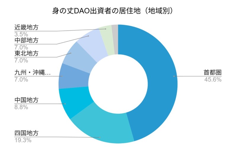 ■身の丈DAO出資者の居住地は、45.6%が首都圏、19.3%が四国