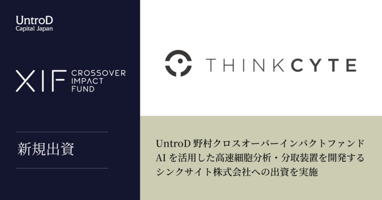 UntroD Capital Japan株式会社(所在地:東京都港区、代表:永田 暁彦、以下、「当社」)が運営するUntroD野村クロスオーバーインパクトファンド(以下、「XIF」)は、AIを活用した高速細胞分析・分取装置を開発するシンクサイト株式会社(本社:東京都文京区、代表取締役:勝田和一郎、以下、「シンクサイト」)へ投資を実施したことをお知らせ致します。シンクサイトは今回の資金調達をもとに、細胞分析・分取装置の研究開発を進めて参ります。